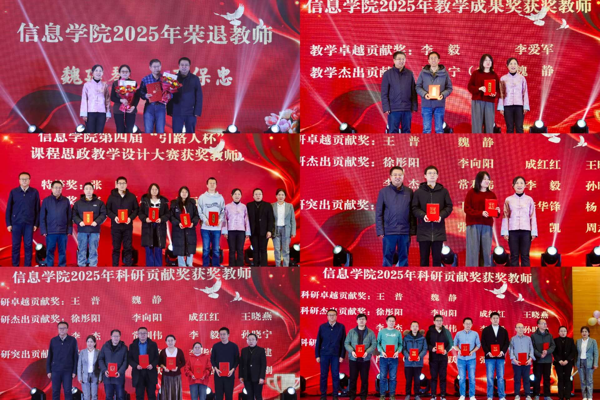 专门为2025年退休的魏建琴、王保忠两位教师举行了荣退仪式,感谢他们在学院数十年的坚守与奉献。为表彰深耕教坛、勇于创新的优秀教师,学院为4位教师分别颁发了教学卓越贡献奖和教学杰出贡献奖,同时为热辣漫画