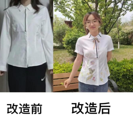 本次活动以“呈旧衣,焕新姿”为主题,全院学生积极参与,配合组队,将不再需要的旧衣物做大胆新颖的改装设计。有的将中华传统文化与西方潮流项结合,展示出文化交流碰撞出的火花,有的把大自然的元素与废旧牛仔结合在一起,展现出别样的光芒,有的别出心裁,把上衣改为精致的裙子,又把裤子改为别致的小背心。大家挥洒创意,脑洞大开,提交了数十件满载青春气息的设计作品,并附上有趣的设计理念。不少参赛学生表示,这样的趣味活动为大家提供了一个展示自我的平台,也让疫情期间同学们的课余生活五彩斑斓,意义非凡。