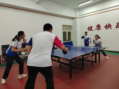 教职工的精神风貌。尤其是在团体冠亚军决赛中,当进行到第四场女双比赛大比分2:2时,女双队员李爱军和原燕萍两位老师在第五局(决胜局)开局不利的情况下,顶住心理压力,克服重重困难,最终以12:10赢得了关键一局,成为冠亚军比赛中最精彩的一笔。