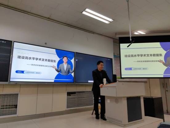 主讲人薛主任以学术文本数据标注面临的挑战为切入点,详细介绍了在学术数据标注过程中需要应对的结构杂、种类多、规范化、知识挖掘、高质量、速度快等的挑战。随后,主讲人强调了“质量的标准是由顾客需求决定的”观点,提出质量策划要设定目标、生产过程要做标准化、产品要做检验与测试。紧接着,主讲人介绍了用以提升人机协同效率的自动化学术文本数据标注流水线与智能调度平台。最后,主讲人详细分享了自适应图像智能处理与基于人工智能的文献分类等核心技术,以及对于学术文本数据标注未来更加自动化、专业化、多模态、跨语言、跨文化特征的展望。主讲人认为,在deepseek等大模型技术高速发展的背景下,越来越多的企业将参与到AI竞争中,学术文本数据标注必将出现更多AI的身影。临近讲座结束,我校2024级图书情报专业学生与薛主任就学术数据标注的相关问题进行了热烈的讨论与交流,同学们纷纷表示受益匪浅。