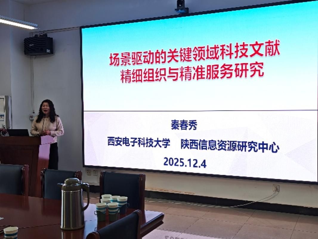 首先,秦春秀教授围绕国家创新驱动发展战略与“十四五”规划要求,系统阐述了关键领域科技文献服务的时代背景与现实挑战。她指出,场景驱动作为新一轮科技革命的重要特征,为科技文献服务的精准化、智能化升级提供了全新路径。其次,秦教授以“场景识别与建模-用户信息需求-文献精细组织-科技文献精准服务研究”为主线,层层深入解析研究框架。在场景识别方面,她提出产业技术链、产业技术类型、科技创新链三维分析框架,并以第三代半导体领域为例,演示了关键技术创新场景的识别与划分方法;在用户需求研究中,通过搜索任务视角、搜索行为视角与UGC视角的多维度分析,揭示了学习型与研究型用户的需求差异,以及不同领域科研人员的信息偏好;在精细组织层面,重点介绍了场景驱动的领域主题词表构建、细粒度知识单元抽取与关联网络构建等核心技术;最终提出多智能体协同的精准服务架构,为实现“用户所得即所想”的服务愿景提供技术支撑。最后,秦教授提出,“场景驱动”不仅是技术方法的创新,更是科技信息服务范式的深刻变革。